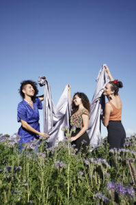 Du français au portugais en passant par l’espagnol et l’arabe, Leyeli est à l’image des trois chanteuses, curieuses et polyglottes, riches d’un brassage culturel qui trouve ses sources dans leurs origines et de leurs expériences personnelles et intimes [+]